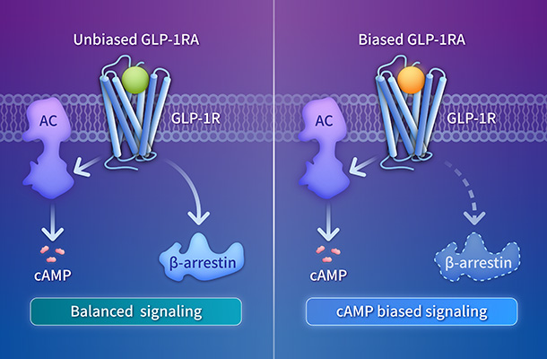 BiasVantage? 偏向型激動劑發(fā)現(xiàn)平臺利用基于結(jié)構(gòu)的合理設(shè)計及全面的信號傳導(dǎo)分析,打造療效增強、脫敏程度降低的精準(zhǔn)療法。該平臺開發(fā)信號選擇性配體,通過降低脫敏程度延長受體活性,從而比非偏向型方法獲得更佳的治療效果。